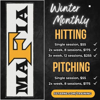 For hitters we will be focusing on emphasizing timing, vision, and explosiveness to keep players sharp and game-ready throughout the season. Players should maintain a consistent routine, swinging 2-3 times per week to optimize performance.